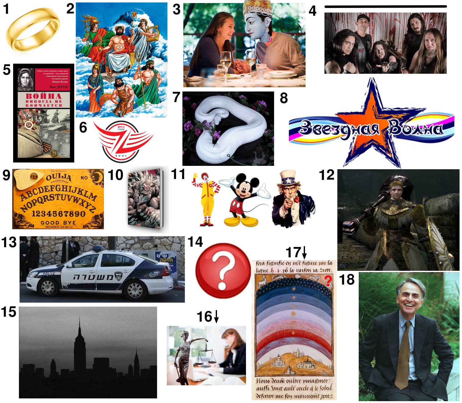 Загадана последовательность некоторых объектов. Важно, что это именно последовательность, а не просто множество - то есть важен порядок.Нужно угадать логику, по которой построена эта последовательность, и либо заполнить пропущенное место в последовательности (красный вопросительный знак), либо отгадать общую логику ее построения, подробнее написано в каждом задании.