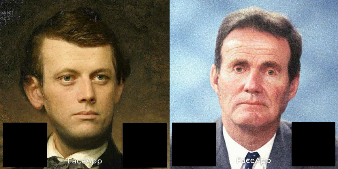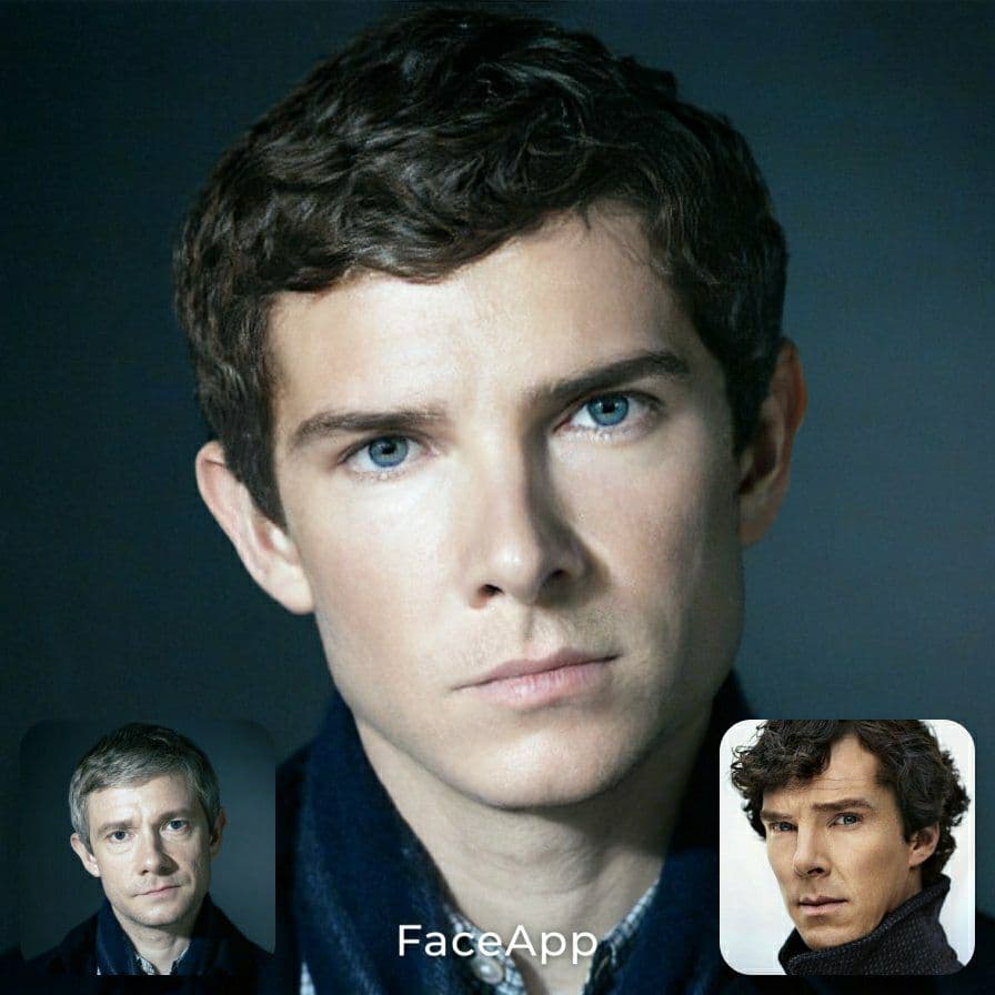 Мы взяли пару реальных человек, которые каким-то образом связаны, и с помощью пирложения Face App смерджили их лица в одно. Мы это сделали двумя способами: первое лицо мерджится на место второго и наоборот, это не самый понятный процесс, но оба изображения имеют черты обоих людей. Вам необходимо по получившейся паре изображений восстановить оригинальных людей. За одного отгаданного человека в паре баллов не дается, к сожалению, только за верную пару.Пример: