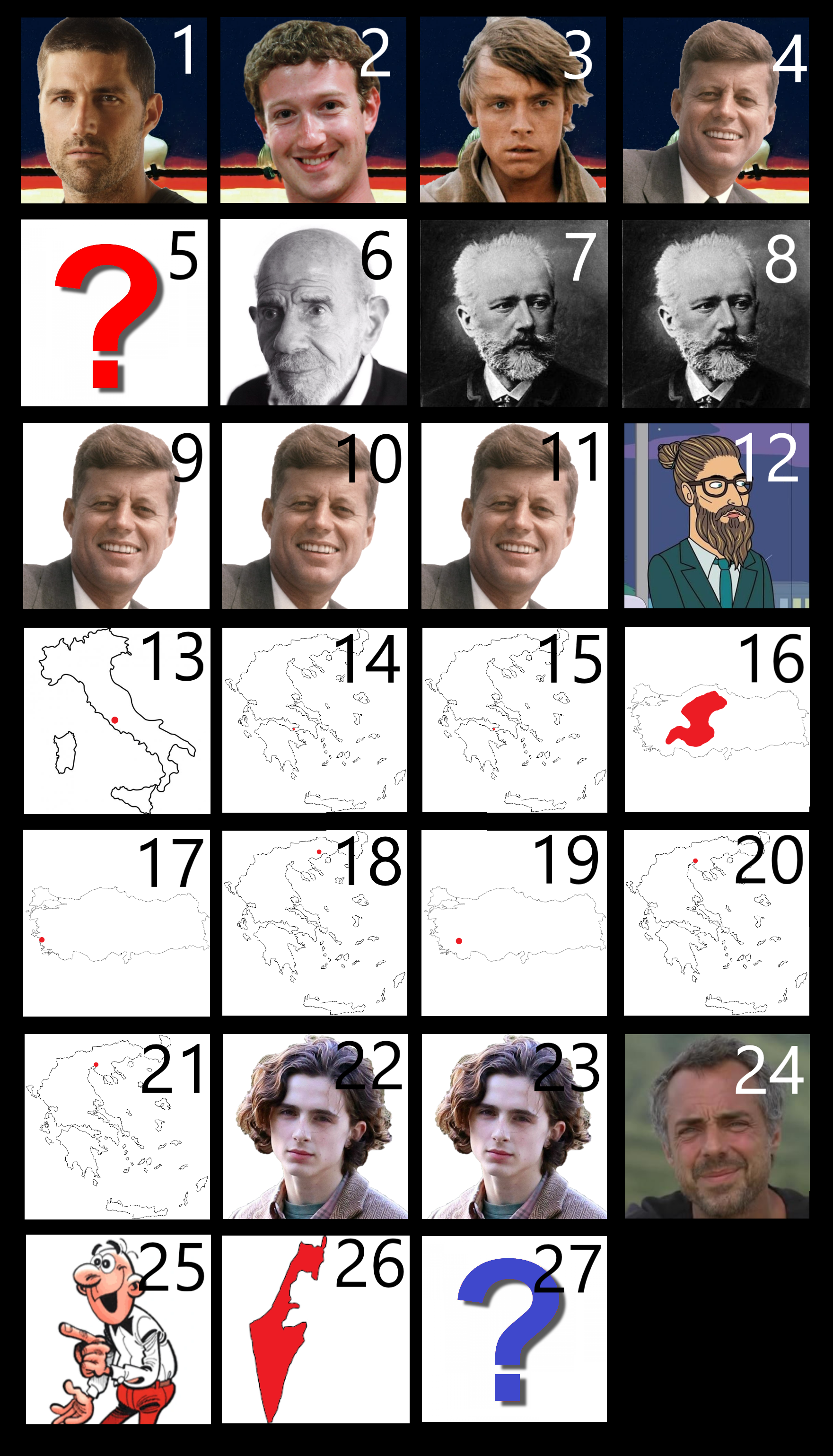 Загадана последовательность некоторых объектов. Важно, что это именно последовательность, а не просто множество - то есть важен порядок.Нужно угадать логику, по которой построена эта последовательность, и либо заполнить пропущенное место в последовательности (красный вопросительный знак), либо отгадать общую логику ее построения, подробнее написано в каждом задании.