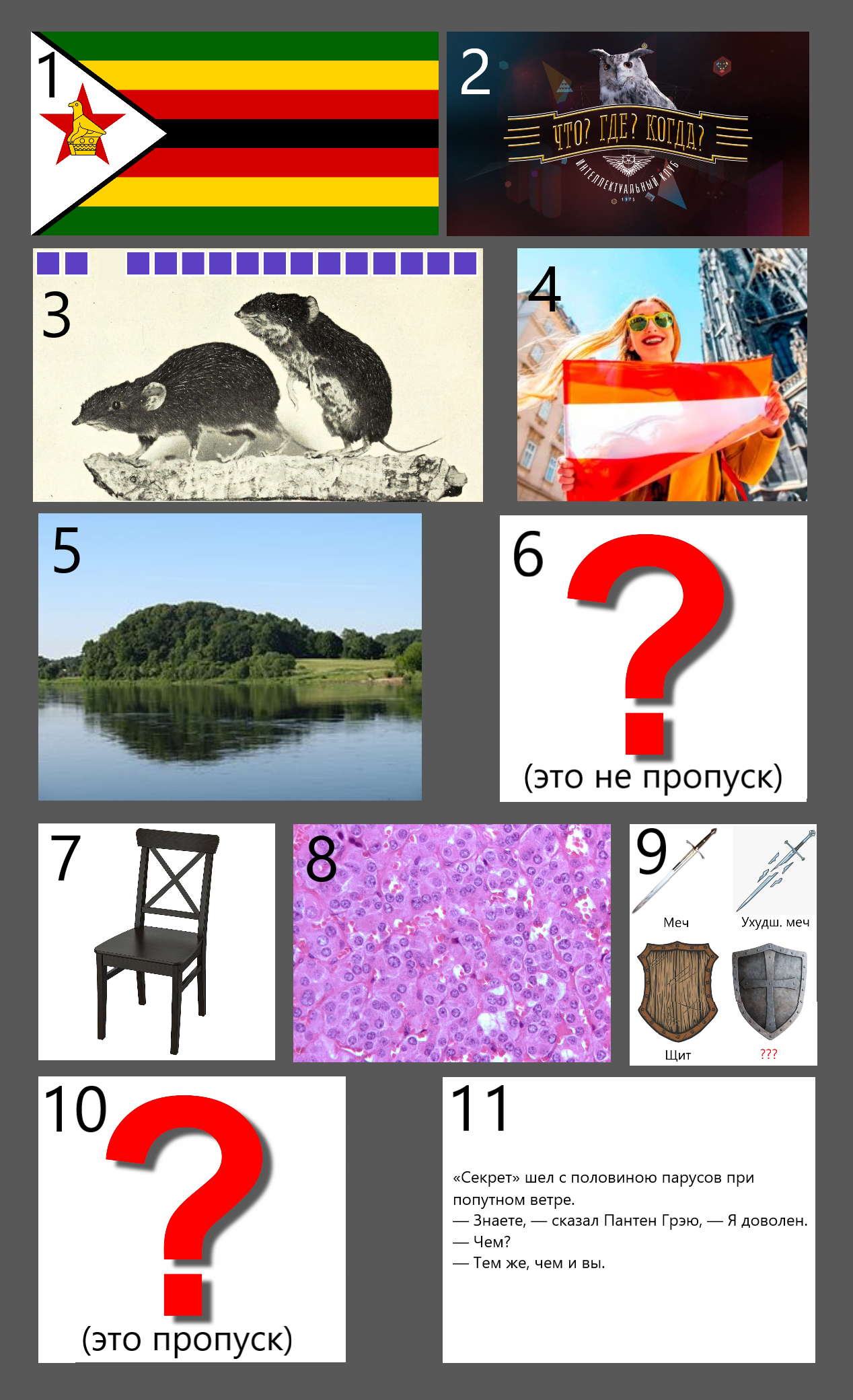 Загадана последовательность некоторых объектов. Важно, что это именно последовательность, а не просто множество - то есть важен порядок.Нужно угадать логику, по которой построена эта последовательность, и либо заполнить пропущенное место в последовательности (красный вопросительный знак), либо отгадать общую логику ее построения, подробнее написано в каждом задании.