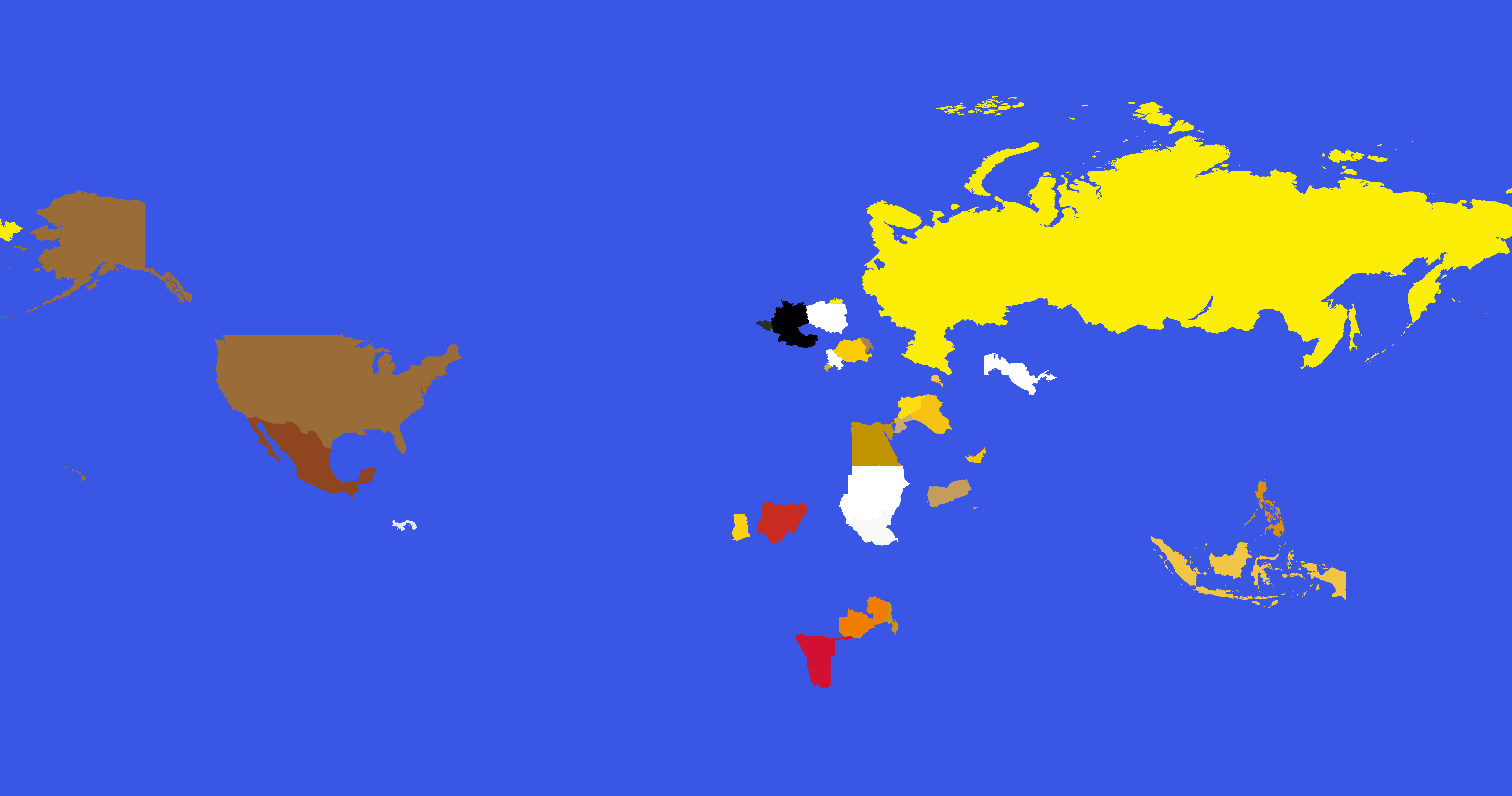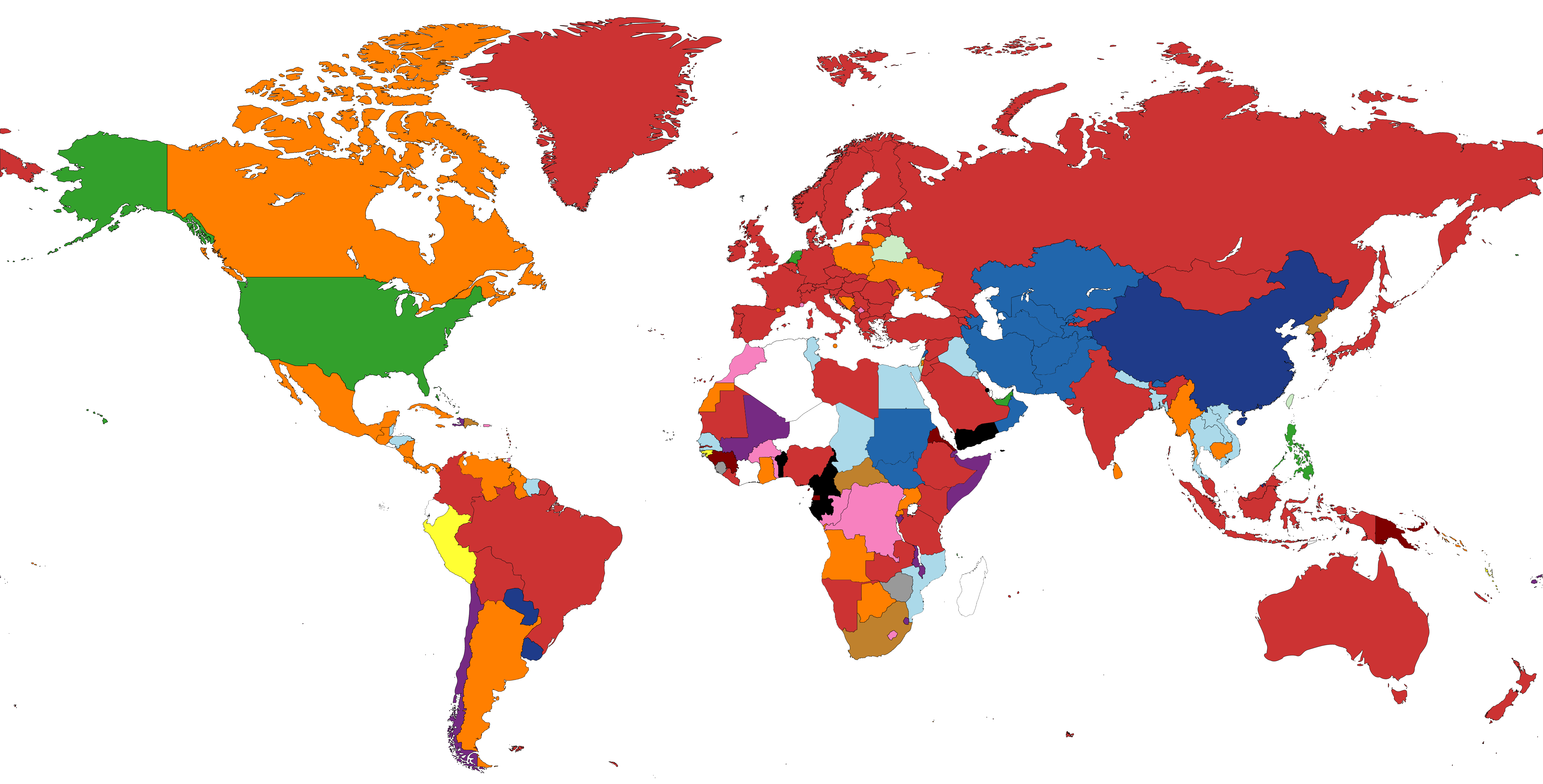 Сами цвета на карте ничего не значат: они лишь обозначают принадлежность стран к одной группе.